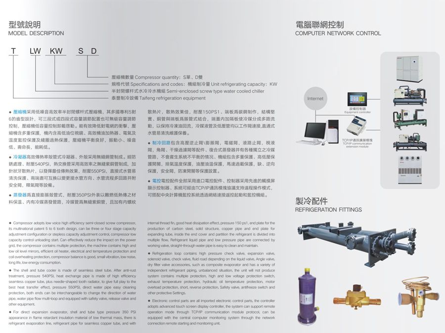 簡介:半封閉螺桿式水冷冷水機組SEMI-ENCLOSED SCREW TYPE WATER COOLED CHILLER